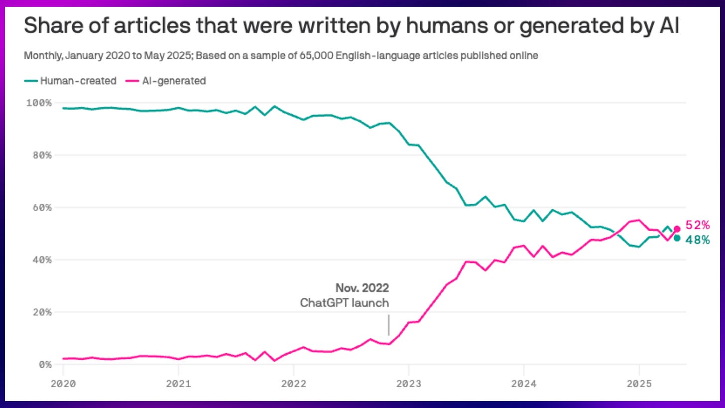 Il sorpasso è avvenuto: gli articoli generati dall’AI hanno superato quelli scritti dagli umani.