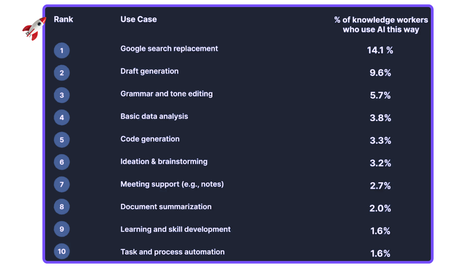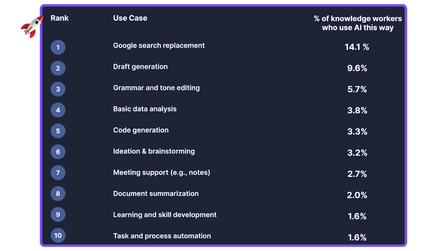 I lavoratori Usa la usano per le ricerche (14%). Poi per generare bozze e per rivedere testi.