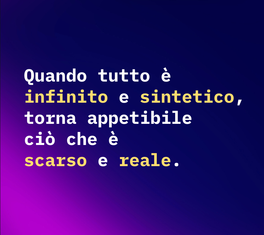 Quando tutto è infinito e sintetico, torna appetibile ciò che è scarso e reale.