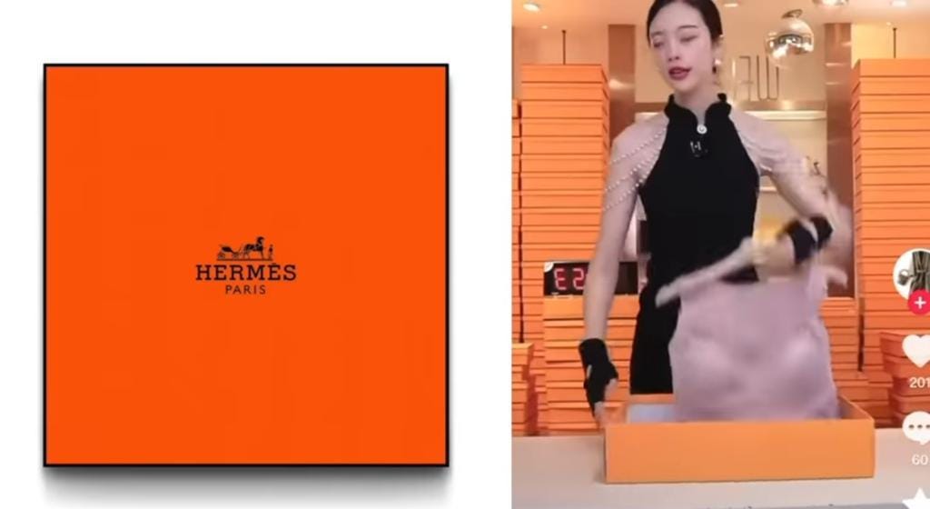 E non una scatola qualunque: una scatola che richiama il packaging di Hermes.